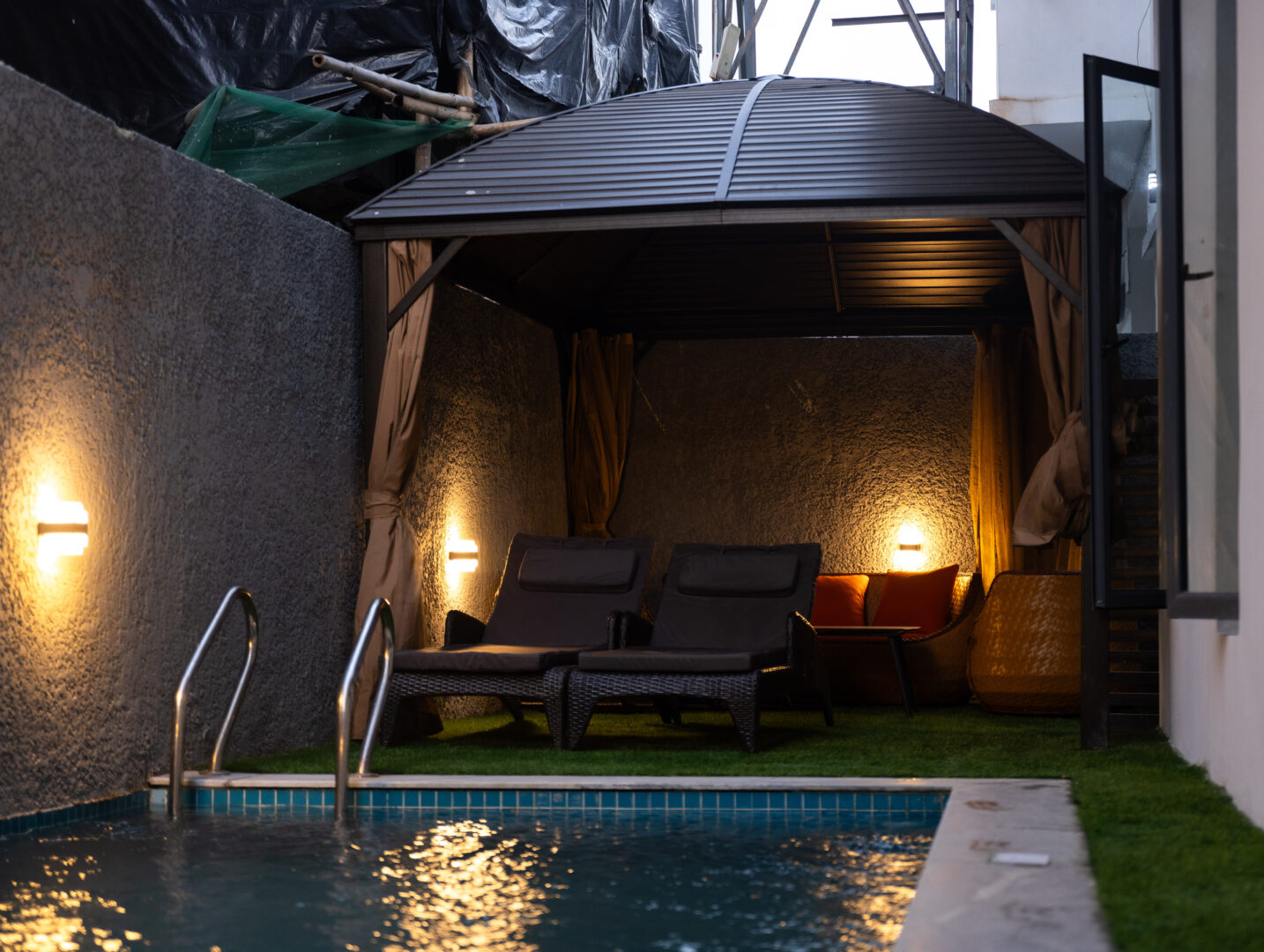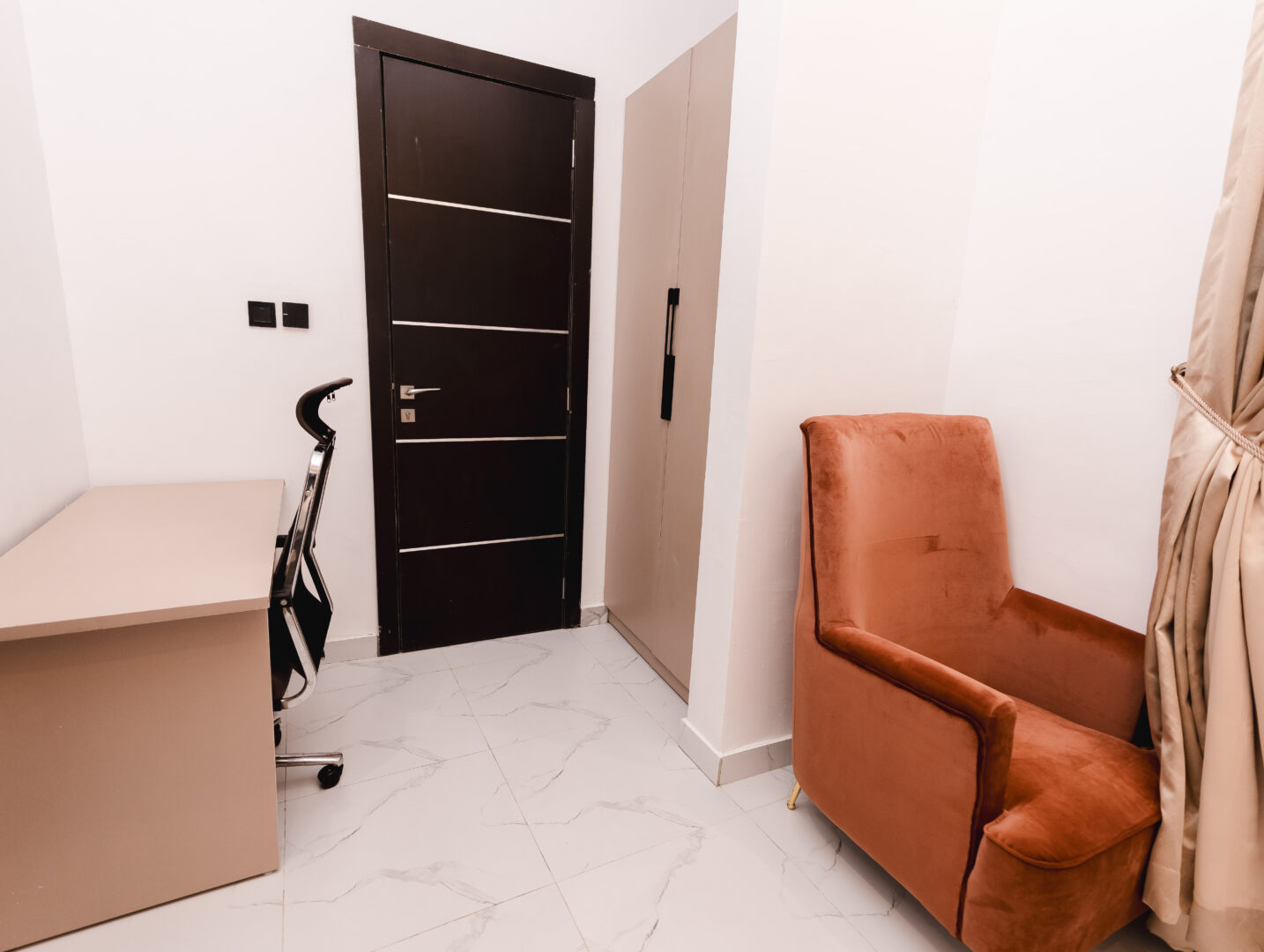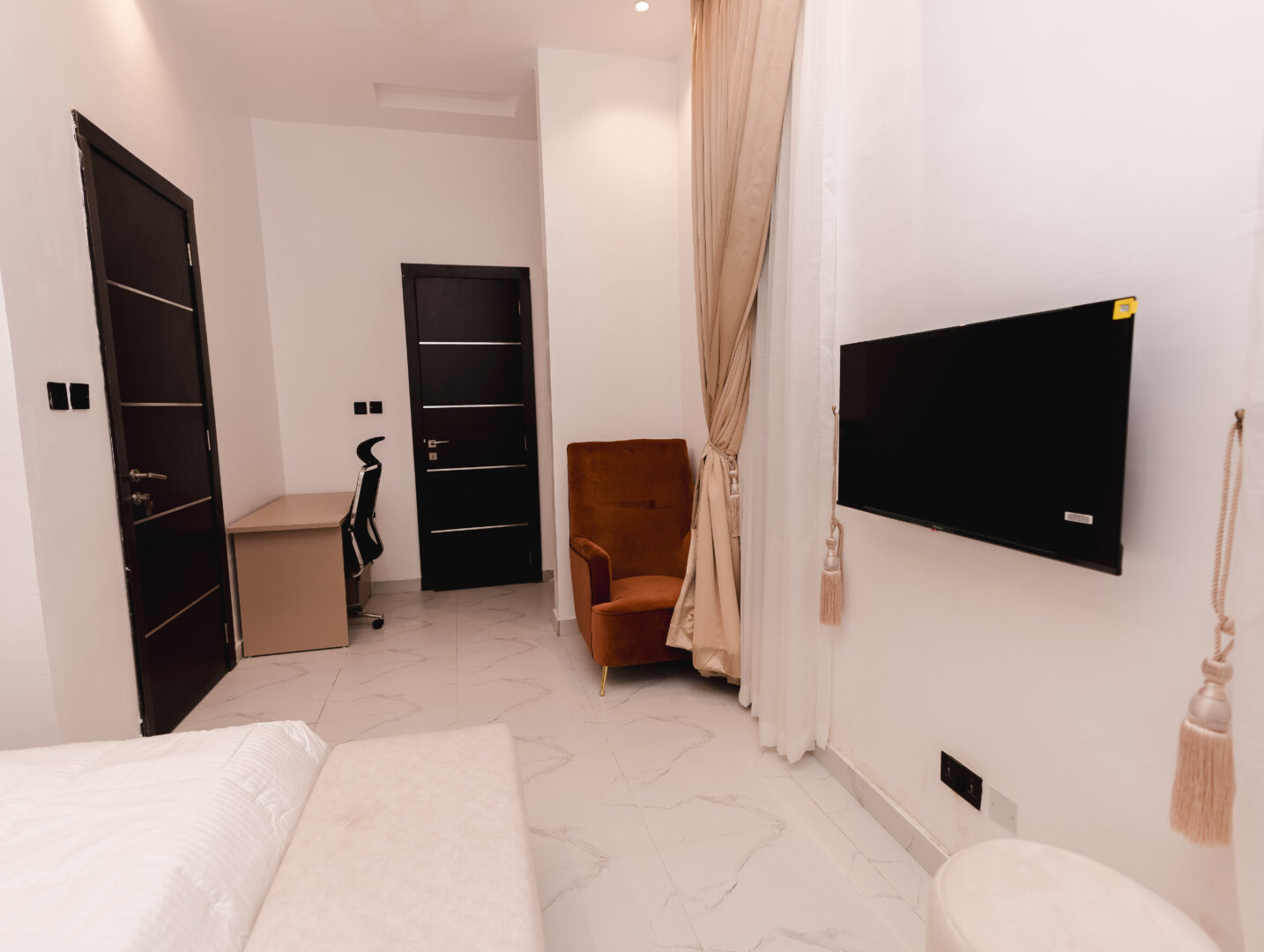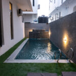 Our flagship 4 bedroom apartment for family and corporate rest in Lekki Lagos. It features a large private pool and outdoor sitting area. Estate facilities include a tennis court, soccer pitch and children’s playground.