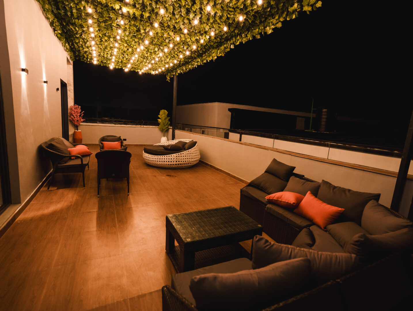 The Rooftop is a luxury 2 bedroom apartment with a spacious and furnished terrace that is ideal for mini get togethers. The interior is exquisite; it offers a large master bedroom and a delightful guest bedroom. Luxury finishes throughout the apartment and a modern kitchen.